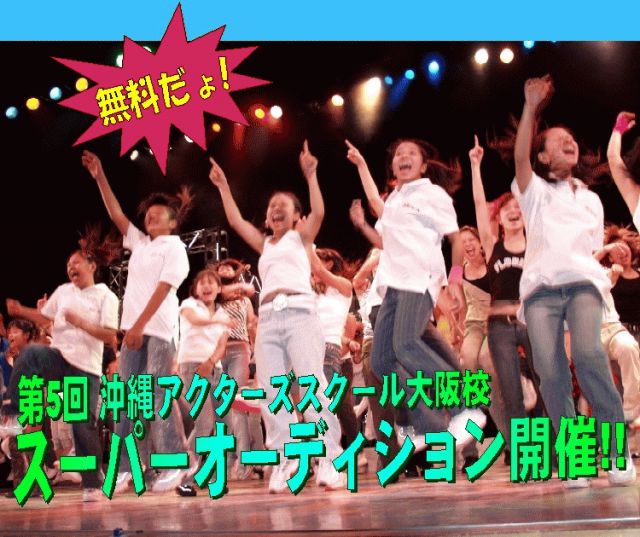 安室奈美恵、MAX、SPEED、知念里奈、DA PUMP、Folder、山田優、黒木メイサ、misono……多くのトップアーチストを送り出した「沖縄アクターズスクール」がオーディションを開催! 前回に引き続き、オーディションにお申込の方には無料体験レッスンを事前に行います。 アクターズ生と一緒にダンスを楽しみませんか? ダンス経験の有無は、一切関係ありません。 私達が大切にしているのは、“ダンスが好き 歌が好き”という熱いキモチです! エンターテイメントの素晴らしさを、この機会にぜひ体験してみて下さい。 まずは体験レッスンを受