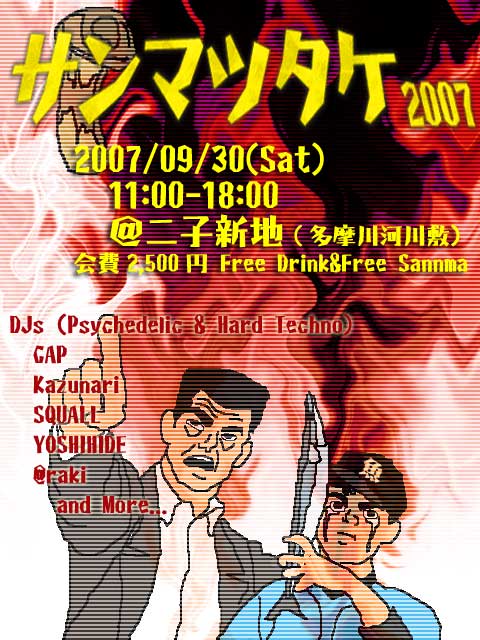 【参加締め切りました。9/30は12-18時の天気予報が曇り・降水確率30%とのことですので、開催します。若干雨が降っても高架の下でやりますので大丈夫だと思いますので、キャンセル・欠席等ないようよろしくお願いします】 今年もやります、サンマ会。 場所は多摩川河川敷(二子新地駅付近二子橋高架下あたり)になりましたので、赤羽と間違えないようご注意ください。 ■EVENT名 サンマツタケ2007 ■EVENT概要 コンセプト: 岩手直送の厳選サンマを炭火でおいしくいただく秋の味覚イベント おまけで松茸も出しちゃ