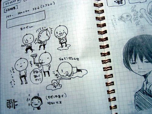 ■デコメとか作るときにラフをかいているノートが あと10ページほどで終わります。 ラフをかいてから実際にかくのに使うまで ちょっと間が開くのであげちゃえるのは もう少し先なのですがイベントたててみました。 ただ、実際問題本当にラフなので (こう描こう、程度の) とても汚いので見どころは無いです。 (写真のでまだましなほう) デコメは細かくラフ描いても、ドットで表現 出来ないことが多いのでざっとのラフしか かかないんですよー。 多分発送は10月くらいになりそうなので まだ細かい締め切りは定めませんが ワタク