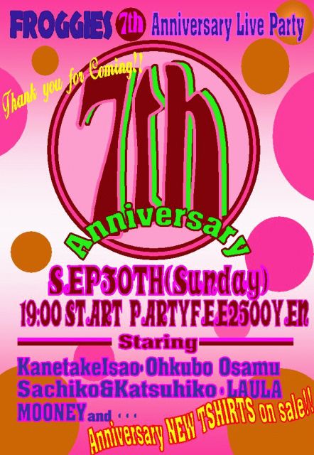 おかげさまで、なんとか7周年です。 9/30まだ先だけど、皆で騒ぎに駆けつけてくださ〜い!!