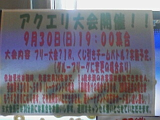 http://www.taito.co.jp/gc/details/134.html 大会内容 フリー大会?1R、くじ引きチームバトル?(グループリーグに変更の場合あり)実施予定 参加受付は随時。先着定員24名まで。16歳未満のお客様は参加できません。 参加費¥300〜500(トーナメントの場合、1回戦負けの場合¥300、2回戦進出の場合はもう¥200になります。それ以降はいただきません。逆トーナメントの方はカード払い出し無し。) ※大会当日は30分前には集合をお願いします。遅刻はキャンセル扱いとさせていただきます。