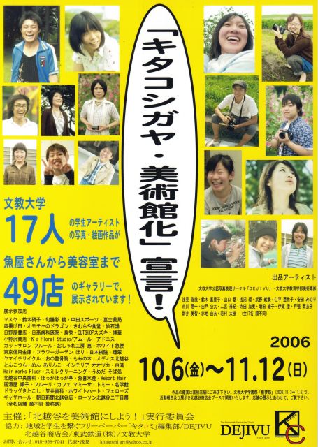 コミュの皆様 イベントの書き込み失礼いたします。 ―アートを特定の場所からパブリックスペースへ! 人々が普段生きている、生活の場に作品を展示したい!― というコンセプトから、昨年に引き続き、今年も「街」を美術館にする企画を行うことになりました。 昨年は、学生アーティストのみの参加でしたが、今回は、学生だけでなく、広く作品出品者を募集したいと思います。 ・作品を通して、様々な人とコミュニケーションをはかりたい。 ・特定のアート関係者だけでなく多くの人に作品を見てもら