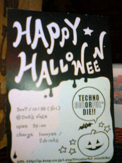 『COLORFUL+ vol.40 〜ハロウィーン大仮装大会〜』 10/26(FRI) @熊谷bar『DOG'S NOSE』 open/start 24:00 ¥1000/2D GUEST DJ's TSUBASA(DISCO CRIME) 鬼&義理(Gerbera L./Ero Glasses) DJ's KAZUYA NEGI nanda モヤン GAVA NIPPO IORI mochiko 毎月恒例『TECHNO』か『死』の夜、『COLORFUL+』。 40回目にして、4度目の『ハロウィーン大仮装party』。 こっそり、3.5周年。 仮装で御来場のかた全員で記念撮影。 のち、2008年のカレンダーにして供養。 そして、プレゼント(予定)。