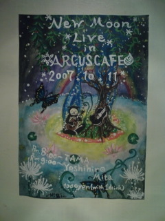 いつもアルカスカフェをご利用頂きありがとうございます。 ここで今週木曜日の新月ライブのお知らせをします。 今週11日の木曜日は新月です。新月は新しい月の始まりで事始めの時に最適な日です。 アルカスカフェではこの日にキャンドルに灯をともしながらアコウスティックライブをします。又ライブの合間に、来てもらったみなさんひとりひとりに、自分の思いを紙に書いてもらって新月のお祈りをしたいと思ってます。個人的なことなのでみなさんにおまかせですが、新月に祈るってなんかいいですね。 さて今回のアーティストは三田欣宏さんとTAMA