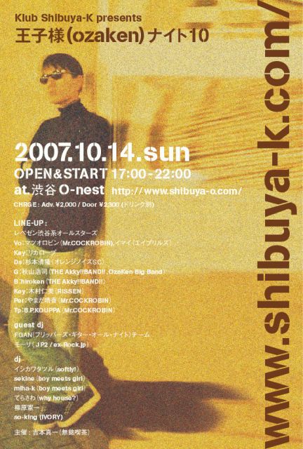 非公式フリッパーズギターコミュの皆さんこんばんは! FGANのナヲです! 【王子様(OZAKEN)ナイト 10】 に、FGANのDJチームがゲストDJとしてお呼ばれされました! 持ち時間目一杯【フリッパーズギターオールナイト】として使わせていただきますので 是非遊びに来てください!!! 今回も上げまくりますよ〜!!!! 来年の1〜3月くらいまでにFGANやりたいな、と思ってるんですが それまで待ちきれない方!!! パーフリで踊りまくりましょう!!!!!! T・A・K・E・! *********************