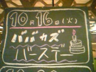 どうもです!! bee's 土曜日のヨシカズ。ことヨシヨシ。です。 ご存知の方も、そうでない方にも、 ちょっとしたご連絡です・・・。 来る、10月16日(火曜)は bee's のオカン、ババ。カズのお誕生日です!! ママって、歳を重ねるごとに、なんだかパワーアップ していってるような気がします・・・(笑)。 皆様お忙しいとは思いますが、ご来店をお待ちしております。 ぜひぜひ、よろしくお願いいたします。