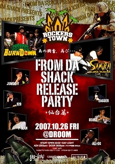"ROCKERS TOWN" RELEASE PARTY 10/26(FRI) 仙台市@DROOM ●Guest Sound● BURN DOWN(大阪) SAMURAI superpower(愛知三河) ●DJ's● JUMBO→Y 920 P-MAN ALI-GG ZAGGER 8SUKE ●Host Sound● FROM DA SHACK Start PM10:00〜 前売 2500yen(ドリンク代別) 当日 3000yen(ドリンク代別) 当方でチケット取扱っておりますので、ご希望の方はお気軽にメッセ下さい