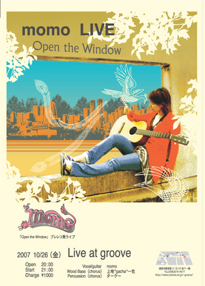 10月26日、金曜日 momo momo[vocal,guitar] ターケー[percussion] 上地gacha一也[double-bass] 開場20:00 開演21:00 料金1,000円+ドリンクオーダー CDはいろいろなミュージシャンが参加しています。 あっぴんさん ギター 天願くん ドラム アベマリエさん アコーディオン 川満睦さん ピアノ エルさん コーラス トキトウさん コーラス アラッキー ラップ とてもいいCDですよ! grooveでレコーディングしました! CDも売ってます! 今日はプチレコ発ライヴです...