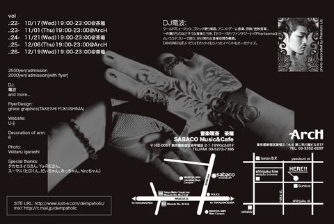 月2回の開催になった[DEMP@HOLIC]。 次回は新宿ArcHでの開催になります!! >>>>> 11/01(Thu) 19:00-23:00 @ArcH http://www.clubarch.net/ 2500yen/admission 2000yen/admission with flyer ※ドリンクはつきませんので、別途お求めください。 ※フードは持ち込み可能です。 ※コミュトップ画像をプリントアウトするか携帯画面に表示してお持ちいただくと フライヤー割引料金が摘要されます。(フライヤー割引との併用は不可です) DJ: 電波