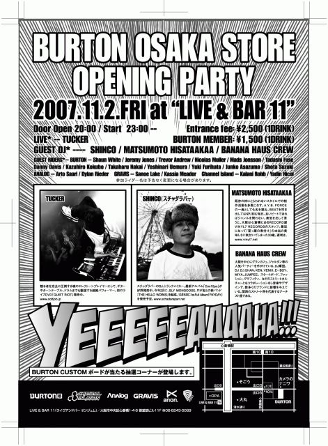 大阪にオープンするスノーボードブランド、バートンのパーティーです。