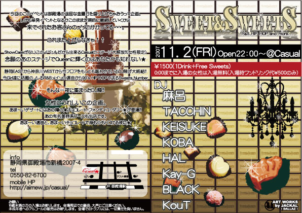 Open 22:00〜 \1500(1Drink+Free Sweets)