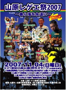 今年もやってまいりました 「山原レゲエ祭」 山原レゲエ祭 〜美ら海を永遠に〜 11月4日(日曜日) @21世紀の森公園 野外ステージ ビーチ清掃開始 12:00 ※清掃活動の集合場所は山原レゲエ祭会場入り口になります。 山原レゲエ祭開場 13:00 山原レゲエ祭開演 13:30 前売りチケット ¥3,000 当日チケット ¥4,000 ※小学生以下無料。ただし保護者同伴に限る。 ☆GUEST H-MAN Jr.Dee REVOLUTION GANG HOTTIE CAT KING-K TATTSUNN U-DOU & PLATY SOUTH KING JAM SESSION MASTA TIKA Ra-Girlz MAJES