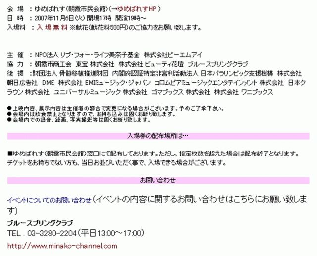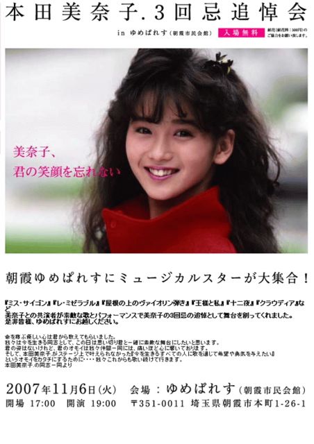 Íè¤ë£±£±·î£¶Æü¡Ê²Ð¡Ë¡¢Ä«²â»Ô»Ô̱²ñ´Û¡Ê¤æ¤á¤Ñ¤ì¤¹¡Ë¤Ë¤Æ¡ÖËÜÅÄÈþÆà»Ò.»°²ó´÷¡×¤¬¹Ô¤ï¤ì¤Þ¤¹¡£ Ê¿Æü¤Ç¤¹¤¬¡¢Ì룷»þ³«±é¤Ê¤Î¤Ç¡¢¤ª»þ´Ö¤Î¤¢¤ëÊýÀ§È󻲲äʤµ¤Ã¤Æ¤ÏÇ¡²¿¤Ç¤·¤ç¤¦¤«¡¦¡¦¡£ ¤Ê¤ª¡¢Æþ¾ì¤Ë¤ÏÀ°Íý·ô¤¬É¬ÍפǤ¹¡£¾ÜºÙ¤Ï£Ì£Æ£Ì¡¦£È£Ð¤ò¤´Í÷²¼¤µ¤¤¡£ http://www.live-for-life.org/asaka2.html
