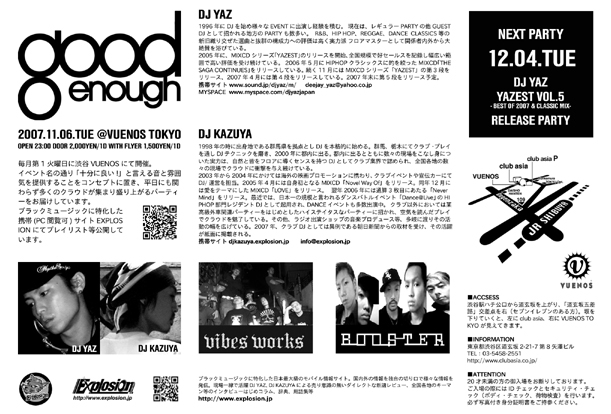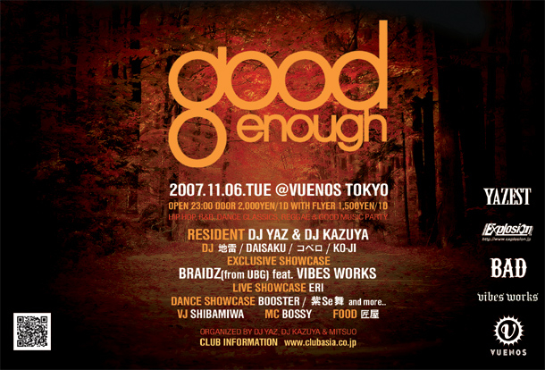 ¹ðÃμºÎéÃפ·¤Þ¤¹¡£ 11/06¤Ï½ÂëVUENOSËè·îÂè°ì²ÐÍ˹±Îã¤Î¥Ñ¡¼¥Æ¥£¡¼¡ÖGood Enough¡×¤Ç¤¹¡£ Á°²ó¤Î10·î¡¢Stylee one¤Î¥ê¥ê¡¼¥¹¥Ñ¡¼¥Æ¥£¡¼¤âÂô»³¤Î¤ªµÒÍÍ¤ÇÆø¤ï¤¤¡¢11/09¤Ï¤Ê¤ó¤ÈÆÊÌÚÂÍøSouth BBC¤Ç¤â³«ºÅ!! º£Àµ¤ËÀ乥Ĵ¤Ê¡ÖGood Enough¡×¤¬¶áÉÕ¤¤¤Æ»²¤ê¤Þ¤·¤¿!! °Ê²¼¾ÜºÙ¤È¤Ê¤Ã¤Æ¤ª¤ê¤Þ¤¹¡£ 11·î6Æü(²Ð)23:00- ¾ì½ê:½ÂëVUENOS ÎÁ¶â:Door?2000/1dޤW/F?1500/1d ¢¨°Ê²¼¤ÎŽÍŽßް޼ŽÞ¤òŽ´ŽÝŽÄŽ×ŽÝ޽¤Ç¸«¤»¤ë¤ÈW/FÎÁ¶â¤È¤Ê¤ê¤Þ¤¹Ž¡ http://www5b.biglobe.ne.jp/~hip-hop/i/event_goodenough.html -------------------------------