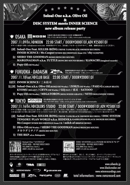 Soloal-One a.k.a. Olive Oil & DISC SYSTEM meets INNERSCIENCE new album release party