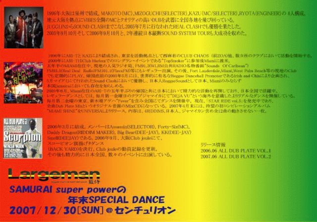 Neighborhood MusicやSummer Nights等、極上のHITチューンをLIVEで体感出来るぞ!!しかも翌日の"DISCOTECA FESTA"がチケットの半券で無料で遊べる豪華な合同企画まで御用意!!今年最後の2DAYS SPECIAL LATIN PARTYを目一杯楽しんでくれ!!