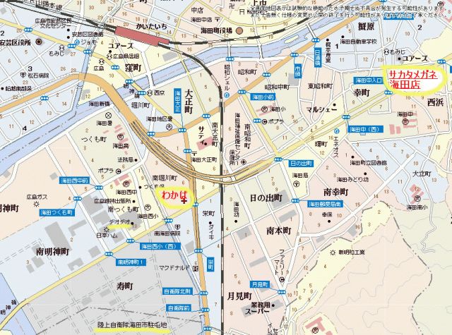 少し早いですが、忘年会をしたいと思います 「焼肉わかば」を考えています 広島県安芸郡海田町南堀川町6−18 082−823−0201 http://www.mapion.co.jp/c/here?S=all&F=mapi3231594071110002638 4000円で食べ放題・飲み放題です(いちおう2時間) 少数であれば、小・中学生は無料(高学年・中学生多数の場合は千円の有料も) 焼き物(肉)だけであれば、看板にでている1980円 +1050円で飲み放題ですが ユッケ(牛刺身)やラーメン・キムチなどは別料金になります 一品の別注文をすれば同等に