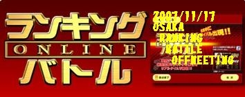 9月・10月と連続で開催しているオフ会ですが 好評なのをいいことに、11月も開催してしまいます。 みんなで集まってランキングバトルを楽しみましょう^^。 曲のジャンルは何でもオッケーです。 邦楽洋楽等の縛りもありません。 年齢性別、もちろん関係なしです。 お気軽に参加してください。 ポチっと参加ボタンを押しちゃえ(笑)。 参加最大人数は20人とさせていただきます。 20人に達した時点で参加募集を締め切らせていただきます。 ※詳細は順次更新しますので 参加される方はマメに確認してくださいませm(_ _)m。