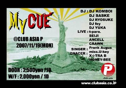 11/19(mon) my cue@club asia P 23:00OPEN adv2500/2d W/F2000/1d