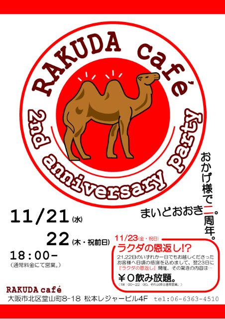 この日は店の定休日ですが営業していますので、お祝いに来てく下さい!!