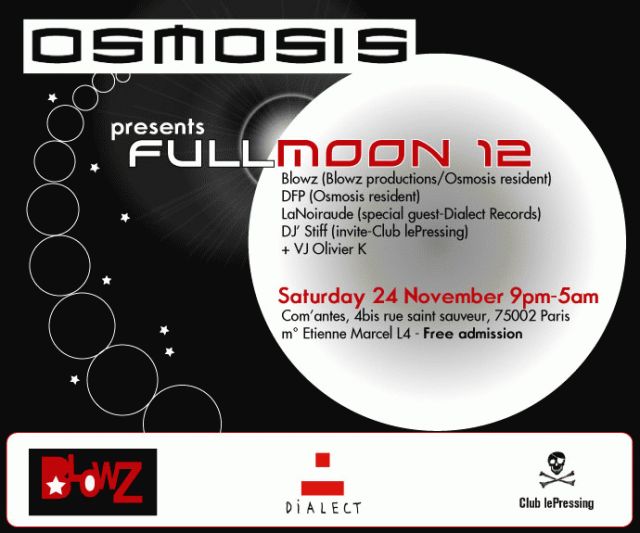 Osmosis revient enfin ce samedi 24 novembre avec son premier évènement depuis un moment, "Fullmoon 12"!