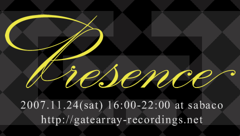 先日のM3からスタートしたCDシリーズ"Presence"参加メンバーによるリリースパーティーを開催します。内容的には昨今では下火と云われるガチのハードテクノ/ハードミニマルを主軸に、Presenceという名を冠する通り各自の持ち味を音だけで表現する、なんの衒いもない直球勝負のイベントです。