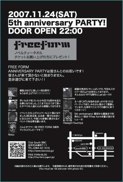 2007/11/24 (土) OPEN 23:00〜5:00