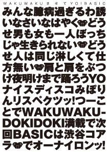 みんな臆病すぎるわ誘いなさいなはやくどうせ男も女も1人ぼっちじゃ生きられないどうせ人は同じ寂しくて仕方ない肩と肩をぶつけ夜明けまで踊ろうYO!ナイスディスコみぽりんリスペクツッ!つーことでWAKUWAKU DOKIDOKI満載で次回basicは渋谷koaraでオーナイロン!