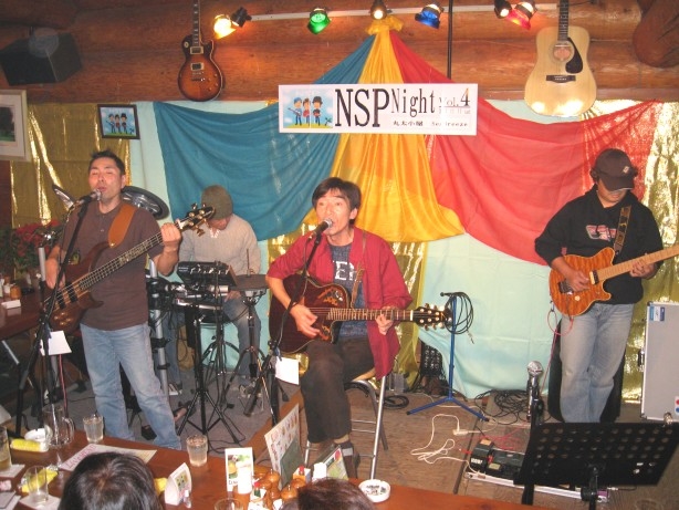 お陰さまで今回のナイトも大盛況\(^o^)/ ありがとうございました。 最新の書き込みに、当日の演奏を期間限定でアップしましたので、よろしかったら見てください。 管理人さん・NSPの大好きな皆さん、こんにちは! 今回で4回目となるNSPナイトが、来る11月17日(土)に開催されます。 当日は午後3:00から6時間、どっぷり&たっぷりNSPのコピー曲オンリーというイベントです。 また打上げもございますのでよろしくお願いいたします。 日時;11月17日(土)    開場;14:30  開演;15:00〜 開場;ライブレ