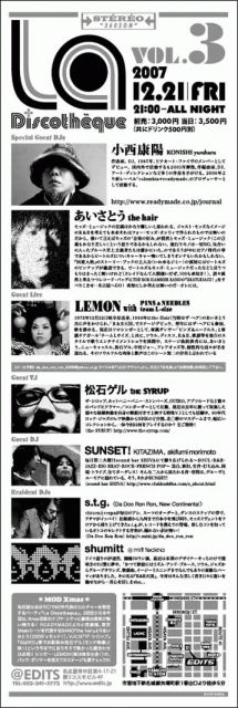 ●料金:前売¥2,500(1drink) / 当日¥3,000(1drink)