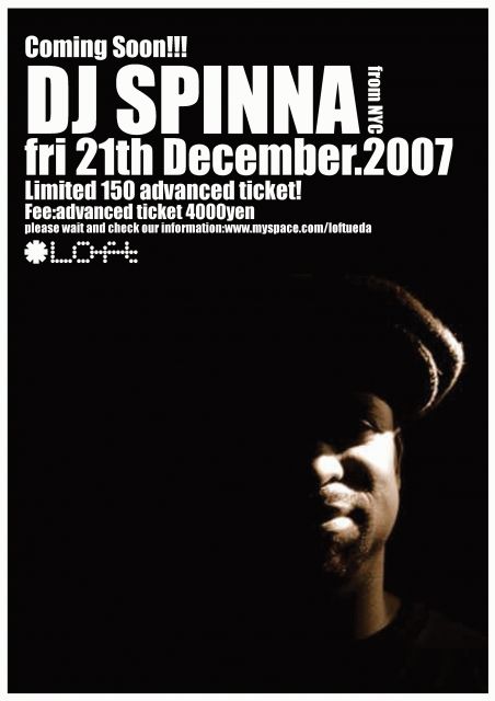 DJ SPINNA(from NYC)出演のイベントの詳細が決まりましたので、告知させていただきます。