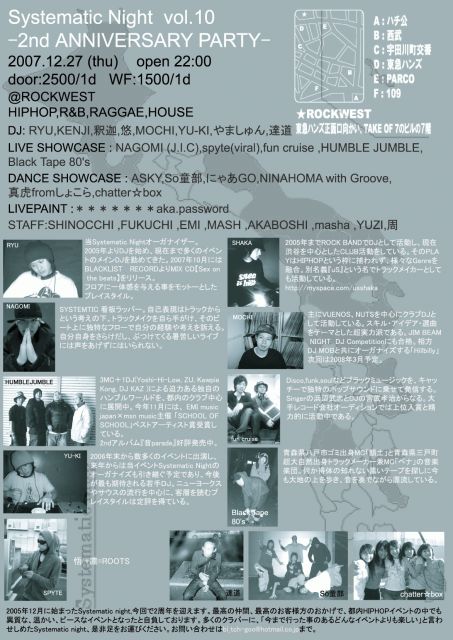 今度、何を思ったのか企画までやってしまいます。しかも、COUNTDOWN JAPAN07/08に出演が決まっているthe chef cooks meのシモリョーさんもDJとして参加してくれます!最高の一日になる事間違いなしです! 興味のある方、是非遊びにきて下さい。