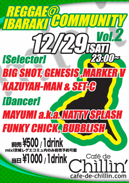 忘年会気分で楽しんで下さいmixi 茨城レゲエコミュ& cafe de Chillin' Presents