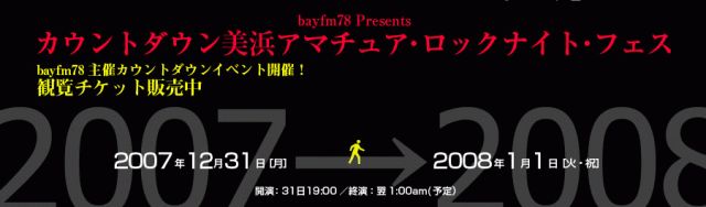 "BayFM主催 カウントダウン美浜アマチュア・ロックナイト・フェス" 開場 :31日18:30 開演:31日19:00/終演25:00予定 【料金】 1,000円(自由席/税込) 出演 リトルハンセン 他 ※当日20:30頃にBayFMで中継が入ります。 千葉市美浜文化ホール 043−270−5619 http://www.mihamahall.jp/countdown1231/ BayFM http://www.bayfm.co.jp/live/index.html