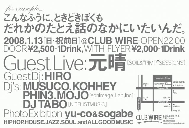 OPEN: 10pm / DOOR: 3000 YEN (1D) / WITH FLYER 2500 YEN (1D)