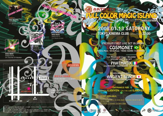 ブラジルの新興フルオンレーベルWiRED musicより「COSMONET」、YABAI RECORDSより、1月にNEWコンピレーション"Ministry Of Chaos"のリリースを控えたフランスの雄「PHATMATIX」、そして日本人アーティストの中でもひときわ異彩を放つモーニングサウンドで、世界中から熱い注目を浴びる「ANCIENT BEACH」が東京キネマ倶楽部に登場!