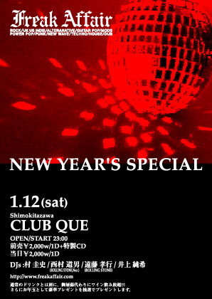 来年の年明け1月4日、渋谷O-Nestの5F/6Fを使用して、竹村延和さんをはじめ多数の豪華ミュージシャンを招いてNew Year Partyを開催いたします。お正月を都内で過ごす予定の方は是非足をお運びください。