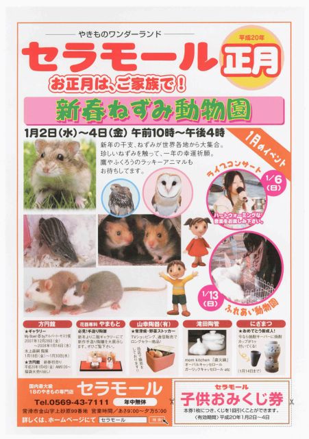 1·î2Æü¤«¤é¥»¥é¥â¡¼¥ë¡Ê¾ï³ê¾Æ²·ÃÄÃϡˤÇÍèǯ¤Î´³»Ù¡Ö»Ò¡×¤Ë¤Á¤Ê¤ó¤ÇÀ¤³¦¤Î¤Í¤º¤ß㤬Â罸¹ç¡ª¤Í¤º¤ßưʪ±à¤¬¤ä¤Ã¤Æ¤¯¤ë¡£¤ª»Ò¤µ¤ó¤´²È²³§¤µ¤ó¤Ç¤ª±Û¤·¤¯¤À¤µ¤¤¡£ ´³»Ù¤ÏȾ³Û¤È¤«¤Î¤â¤Î¤â¤¢¤ë¤·¡¢µ¢¾Ê¤Î¤ªÅÚ»ºÉʤ⤤¤¤¤â¤Î¤¬¸«¤Ä¤«¤ë¤«¤â¡©