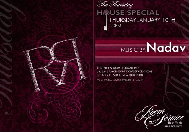 Join us this Thursday at Room Service (35 E 21st Street. Bet.Broadway&Park Ave)to dance the night away to the spins of Nadav and special guests of all major model agencies present to kick off fashion week season.