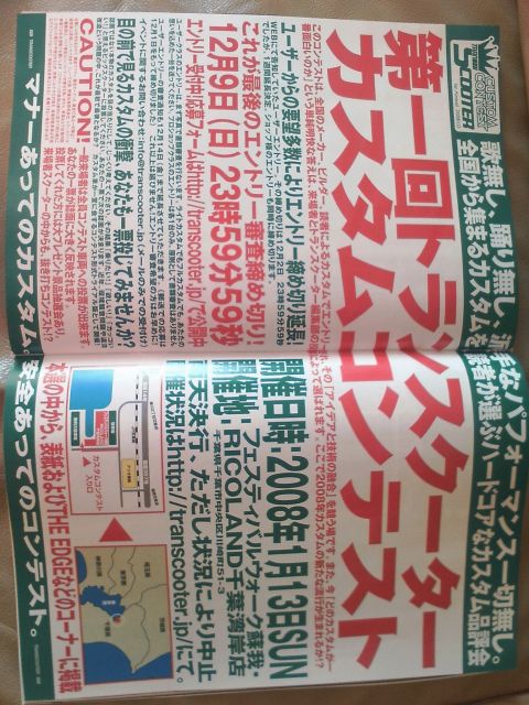 コンテストにエントリーすることは出来ませんが、もしかしたら撮影されるかも♪と期待して♪ ま、いろんなカスタムバイクを見るのも勉強になりますし、マグミーの時みたいに大勢で登場して目立ちたいなと♪ 当日、都合合えば『潮風』と合流して走りたいと思います。 細かい時間が決まってませんが、今のところ、朝8時に新子安マック集合、8時半出発を考えてます。雨天でもコンテストは開催するみたいですが、浜っことしては雨天中止としたいと思います。 沢山の参加 お待ちしてます♪