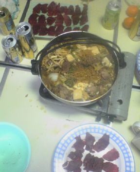 今年のRISEの新年会は鍋パーティーです メニューは好評の猪のすき焼き、蝦夷鹿のしゃぶしゃぶの予定です もしかしたらサプライズ食材が出るかも 飲み物はビール系、カクテル、サワー、ワイン、ソフトドリンクなど全て飲み放題です [集合場所] 千代田線綾瀬駅西口前12:00 [開催時間] 12:00〜17:00 [費用] 2,500円(食材費、機材費、お酒飲み放題込み) [定員] 20名 [締切] ドタ参大歓迎ですが、買出しの関係で当日11:00までに連絡下さい。 [参加連絡先]