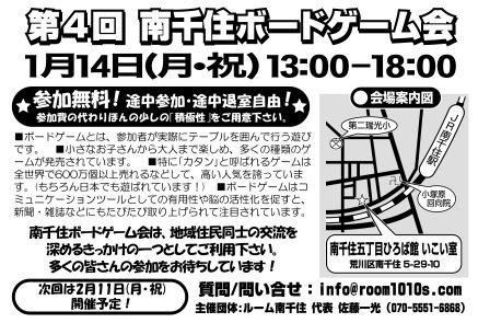 ■ボードゲームとは、参加者が実際にテーブルを囲んで行う遊びです。 ■小さなお子さんから大人まで楽しめ、多くの種類のゲームが発売されています。 ■特に「カタン」と呼ばれるゲームは全世界で600万個以上売れるなどして、高い人気を誇っています。(もちろん日本でも遊ばれています!) ■ボードゲームはコミュニケーションツールとしての有用性や脳の活性化を促すと、新聞・雑誌などにもたびたび取り上げられて注目されています。 ■参加費は無料です。 ■参加費のかわりに少しの「積極性」をご用意下さい。