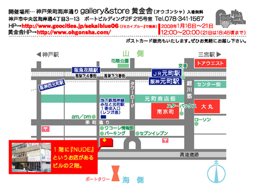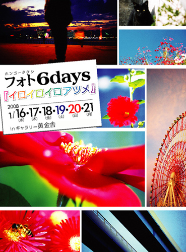 卒業生のほんたけと申します。 神戸元町のギャラリーで趣味写真展をします。 趣味写真展『イロイロイロアツメ』 1月16日(水)〜21日(月) 12:00〜20:00(最終日は18:45頃まで) 場所: 神戸元町・栄町海岸通り レンタルギャラリースペースと ファッション、雑貨のショップgallery&store 黄金舎(おうごんしゃ) →http://www.ohgonsha.com/ 私の作品HPです。 →http://www.geocities.jp/sekaiblue06 展示する写真はフィルム一眼で風景・モノ・人を撮った写真ですが、 ホルガポラロイドで撮った写真のアルバム