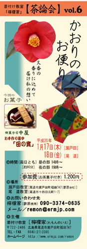 ¤«¤ª¤ê¤Î¤ªÊØ¤ê ¡ØÊ¸¹á¤Î¹á¤ê¤Ë¹þ¤á¤ÆÆÏ¤±»ä¤ÎÁÛ¤¤¡Ù ʸ¹á¤ÏÊ¿°Â»þÂ夫¤é¤¢¤Ã¤¿¤â¤Î¤Ç¡¢¤½¤ÎÀΤä¤ó¤´¤È¤Ê¤µ®Â²¤¬Ê¸(¼ê»æ)¤òÅϤ¹¤È¤¤Ë¹á¤ò¤¿¤¤·¤á¤¿¤³¤È¤¬¤½¤Î»Ï¤Þ¤ê¤È¤«¡¦¡¦¡¦¡¦Ê¸¤ÎÃæ¤ËÆþ¤ì¤Æ¼êÅϤ¹¾®¤µ¤Ê¤ª¹á¤Î¤³¤È¤òʸ¹á¤È¸À¤¦¤½¤¦¤Ç¤¹¡£ ¼ê»æ¤Ë¶´¤ó¤ÇÁ÷¤Ã¤¿¤ê¡¢ËܤΤ·¤ª¤ê¤È¤·¤Æ»È¤Ã¤¿¤ê¡¢Ì¾»ÉÆþ¤ì¤äÍÎÉþ¤ËÆþ¤ì¤¿¤ê¤Ê¤É¡¢ ÍÍ¡¹¤Ë³Ú¤·¤á¤Þ¤¹¡£ º£²ó¤Ï¥¢¥í¥Þ¥»¥é¥Ô¥¹¥È»Ô¼Ëã°ÍÀèÀ¸¤ò¤ª·Þ¤¨¤·¤Æ¹á¤ê¤Î¤ªÏäò¤·¤Æ¤¤¤¿¤À¤Ê¸¹á¤òºî¤Ã¤Æ¤ß¤¿¤¤¤È»×¤¤¤Þ¤¹¡£ ¡ÊÀèÀ¸¤Î¤ªÏäϣ±£¸Æü£±£´»þ¡Á¤Î¤ß¤È¤Ê¤Ã¤Æ¤ª¤ê¤Þ¤¹¡Ë ¡¡¡¡¡¡¡¡