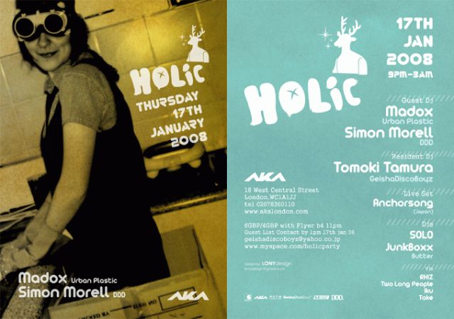 ¥í¥ó¥É¥ó¤ÇºÇ¤â¥¢¥Ä¥¤ÌÚÍËÆü¤Î¥Ñ¡¼¥Æ¥£¡¼¤È¤·¤Æ¼ÂÀÓ¤òÀѤߡ¢ ³Î¼Â¤Ë¥í¥ó¥É¥ó¥¯¥é¥Ö¥·¡¼¥ó¤Ë¤â±Æ¶Á¤òÍ¿¤¨¤Æ»Ï¤á¤Æ¤¤¤ë¡ÖHolic¡× ¿·Ç¯°ìȯÌܤÎHolic¤¬º£½µ¤ÎÌÚÍËÆü¤ËAKA¤Ç¹Ô¤ï¤ì¤Þ¤¹¡£ º£Ç¯»Ï¤á¤Î¥²¥¹¥È¤Ï¡¢ ºòǯ¡¢Womb¤Î¥Ï¥í¥¦¥£¡¼¥ó¥Ñ¡¼¥Æ¥£¡¼¤ÇÍèÆü¤òÀ®¸ù¤µ¤»Â¿¤¯¤Î¥¯¥é¥¦¥É¤òʨ¤«¤»¤¿¡¢ ¥¤¥¿¥ê¥¢¿ÍDJ¤ÎMadox¡ª¡ª ¤µ¤é¤Ë¡¢¥í¥ó¥É¥ó¤ÎÏ·ÊÞ¥¯¥é¥Ö¤Ç¤¢¤ë¡ÖKey¡×¤Ç½µËö¤Î¥ì¥¸¥Ç¥ó¥È¥Ñ¡¼¥Æ¥£¡¼¤È¤·¤Æ¡¢ À®¸ù¤ò¼ý¤á¤Æ¤¤¤ë¥¤¥Ù¥ó¥È¡ÖD.D.D¡×¤«¤éSimon Morell¤¬Åо줷¤Þ¤¹¡£ ½µËö¤Ë¤Ï¡¢¥í¥ó¥É¥ó¤ÇºÇ¤â¾¦¶ÈŪ¤ËÀ®¸ù¤ò¼ý¤á¤¿¥¯¥é¥Ö¡¢Ministry of Soun