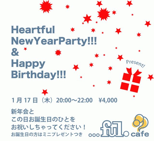 µÈ¾Í»û¤Ë¤¢¤ë¤«¤ï¤¤¤¤¥«¥Õ¥§¡Ö¥Õ¥ë¥«¥Õ¥§¡× http://www.worksn.com/fulcafe/menu.html ¤Ë¤Æ¡¢ ¡Ø£±·î£±£·ÆüÀ¸¤ì¤Îˡ§¡Ù¹çƱÃÂÀ¸Æü²ñ¤ò·×²è¤·¤Æ¤ª¤ê¤Þ¤¹¡£ ½ê°â¡¢¥ª¥Õ²ñ¤Ç¤¹¡£ ¤³¤Á¤é¤ÏƱ¤¸1/17À¸¤Þ¤ì¤Î¥«¥º¥ß(n)¤µ¤ó¤¬·Ð±Ä¤µ¤ì¤Æ¤¤¤ë¥«¥Õ¥§¤Ç¤¹¡£ ¤Á¤Ê¤ß¤Ë¥Õ¥ë¥«¥Õ¥§¤Î¥³¥ß¥å¡áful.comu¤Ï¤³¤Á¤é¢ http://mixi.jp/view_community.pl?id=2663320 ÅöÆü¤Ï¡Ö¥Ï¡¼¥È¥Õ¥ë¥Ê¥¤¥È¡×¤È¤¤¤¦½¸¤ê¤â¤¢¤ë¤è¤¦¤Ç¤¹¤¬¡¢ ¤½¤Á¤é¤ËÊØ¾è¡©¤·¤Æ ¡Ö1/17À¸¤Þ¤ì¹çƱÃÂÀ¸Æü²ñ¤â¤ä¤ê¤Þ¤·¤ç¤¦¡×¤È¤¤¤¦»ö¤Ë¤Ê¤ê¤Þ¤·¤¿¡£ ¤Ê¤Î¤Ç¡¢¿·¤·¤¤¤ªÍ§Ã£¤âÂô»³½Ð