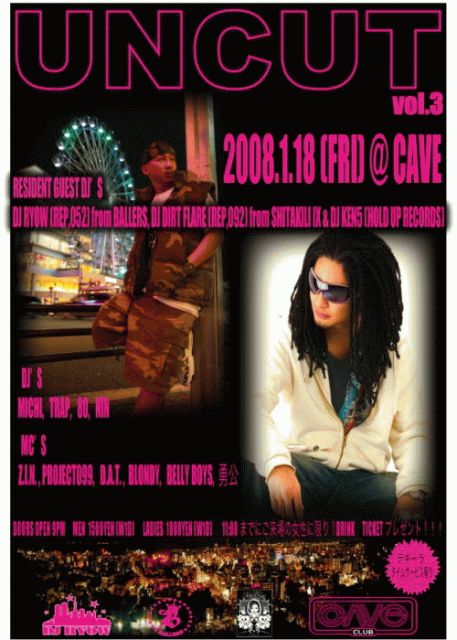 いよいよ明日は、毎奇数月の第3金曜のレギュラー@ CLUB CAVE wit' DJ RYOW(BALLERS) & DJ DIRT FLARE(SHITAKILI ?)デス!!!女性に限り12時までに入ると\1000(WITH 1 DRINK)で1 DRINK TICKET PRESENT!!!つまり入場無料です!!!