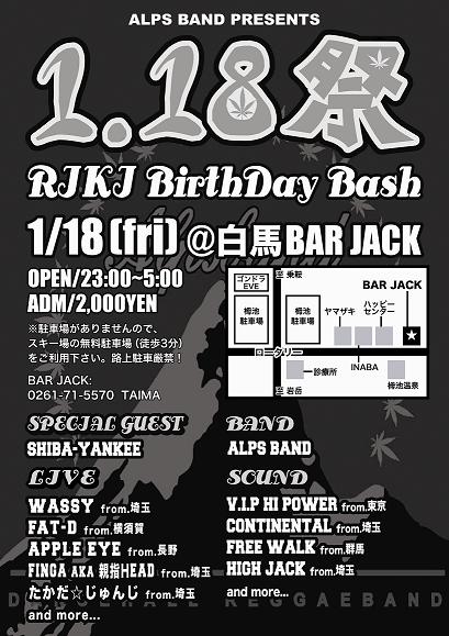1/18日(FRI)白馬 BAR JACK