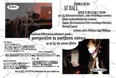 出演:BJ Nilsen(electronics, field recordings/Sweden)/Hildur Gudnadottir(cello/iceland)/Shayne Bowden(noise,field Recordings/福岡)/江上靖