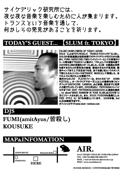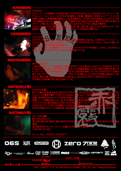 CHARGE:ADV.1500yen(1drink)DAY.2000yen(1drink)